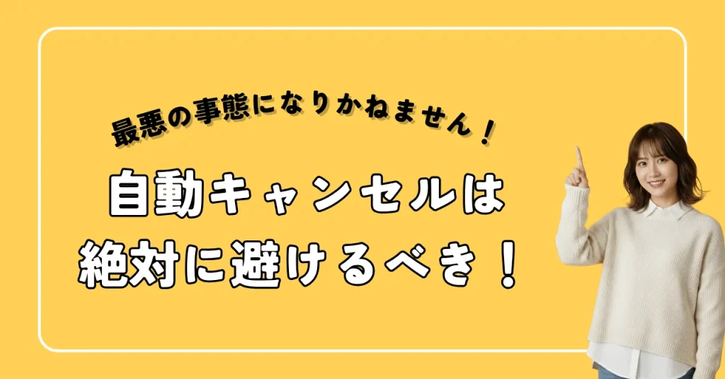七日という時間の期限を過ぎて自動キャンセルが発生すると、ペナルティの影響が出やすくなるため、注意が必要です。