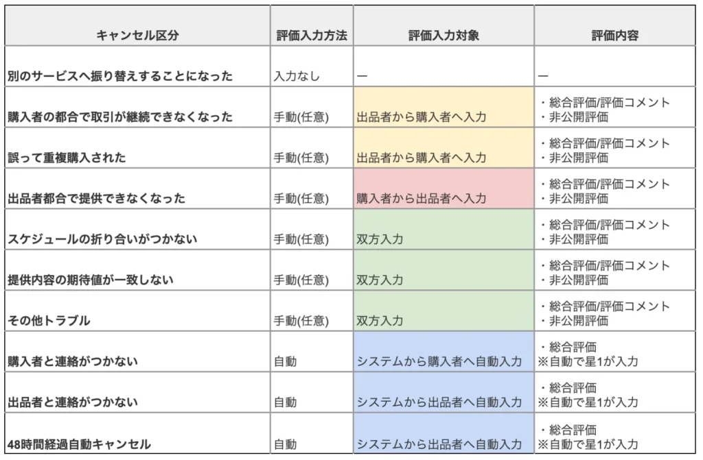 そのため、基本的にはキャンセルだからといって評価が付く・付かないということはなく、上記のようなトラブルが原因のキャンセルには評価がつく可能性があるため、特に注意が必要です。