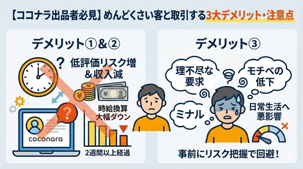 ココナラでめんどくさい客と取引するデメリット・注意点