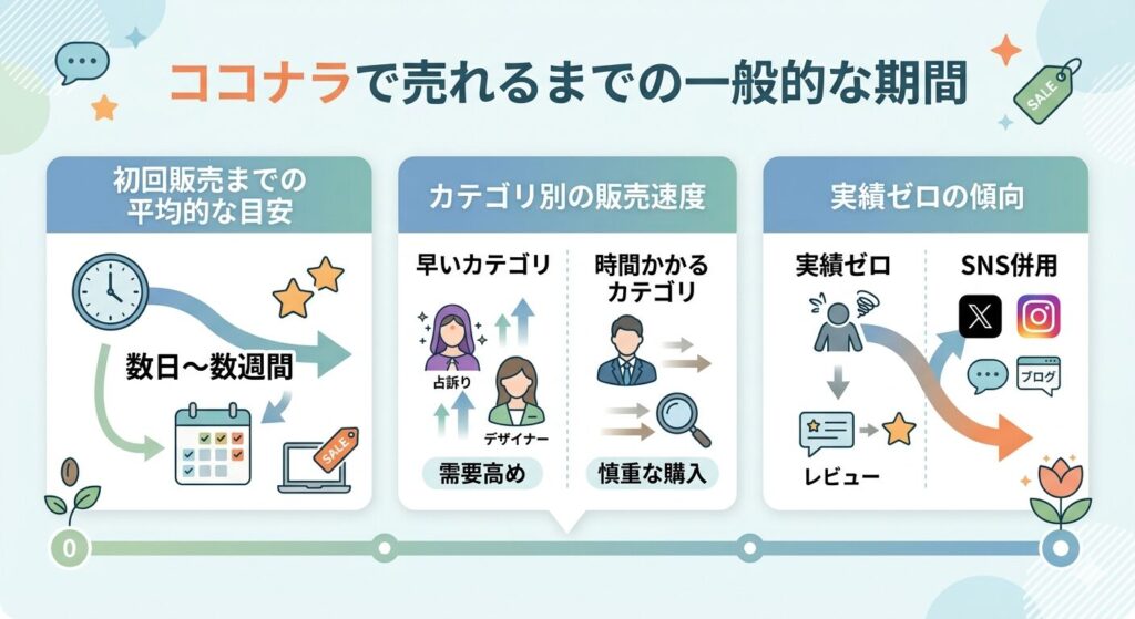 ココナラ利用者の声をもとにすると、初回販売までの目安は数日から数週間程度と言われています。