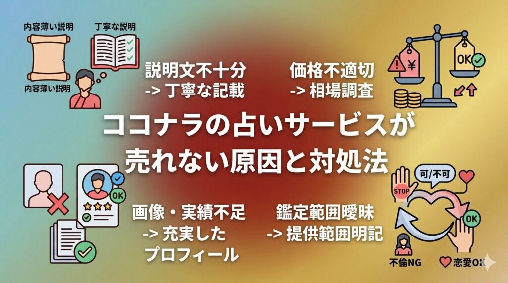 ココナラの占いサービスが売れない原因と対処法