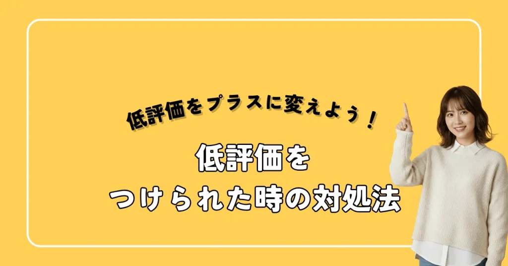 低評価の理由を具体的に認め、「ご不便をおかけし大変申し訳ございません。今後は〇〇の点を改善いたします」といった前向きな説明を含めることが大切です。