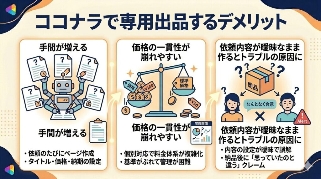 ココナラで専用出品するデメリット