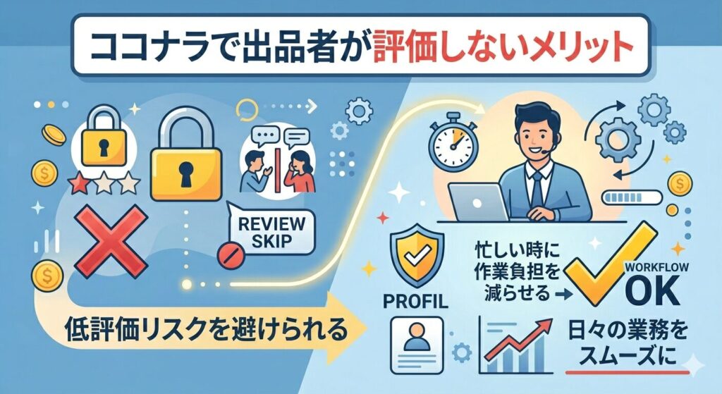日々の出品業務をスムーズに回すために、評価を省くことは実務的な選択のひとつといえます。