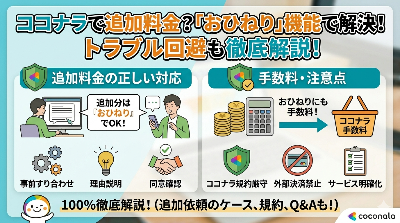 ここでは、ココナラで追加料金が発生したときの正しい対応方法について解説します。追加料金の仕組みを理解しておくことで、スムーズにやり取りを進めることができます。
