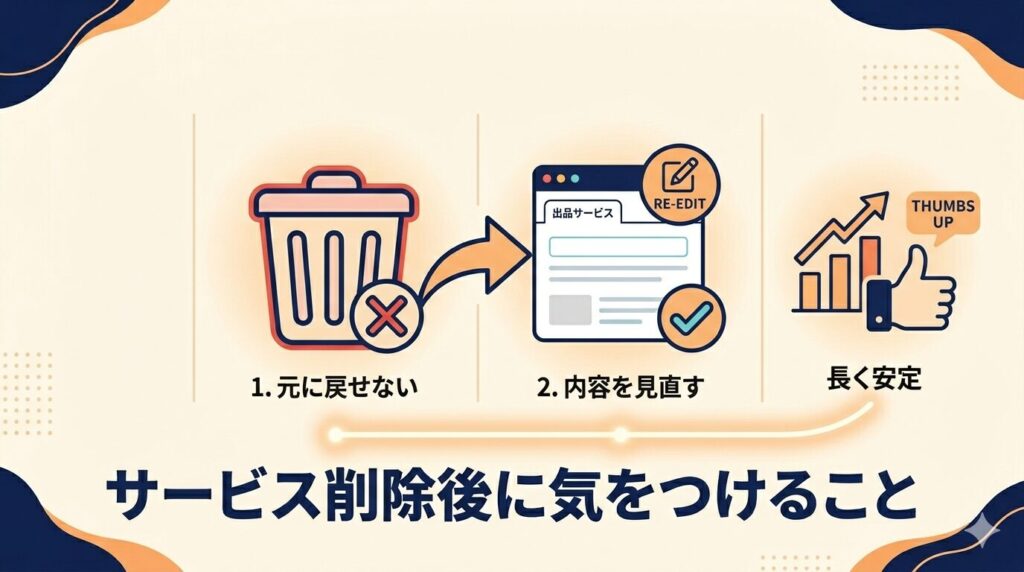 ここでは、サービスを削除した後に知っておきたい注意点について、公式の情報をもとにわかりやすくご紹介します。