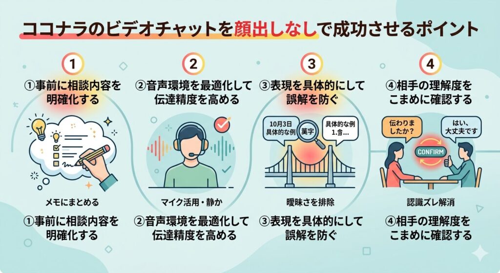 顔出しなしの相談では、相手が理解できているかどうかを意識的に確認することが重要です。