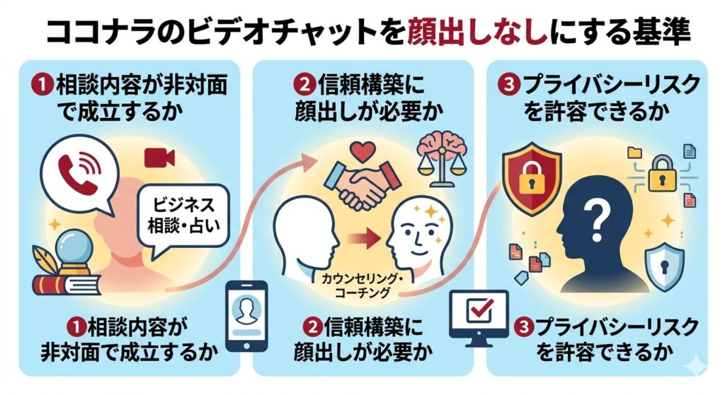 顔出しなしを選ぶ前に、音声だけで相談が成立する内容かどうかを確認しましょう。