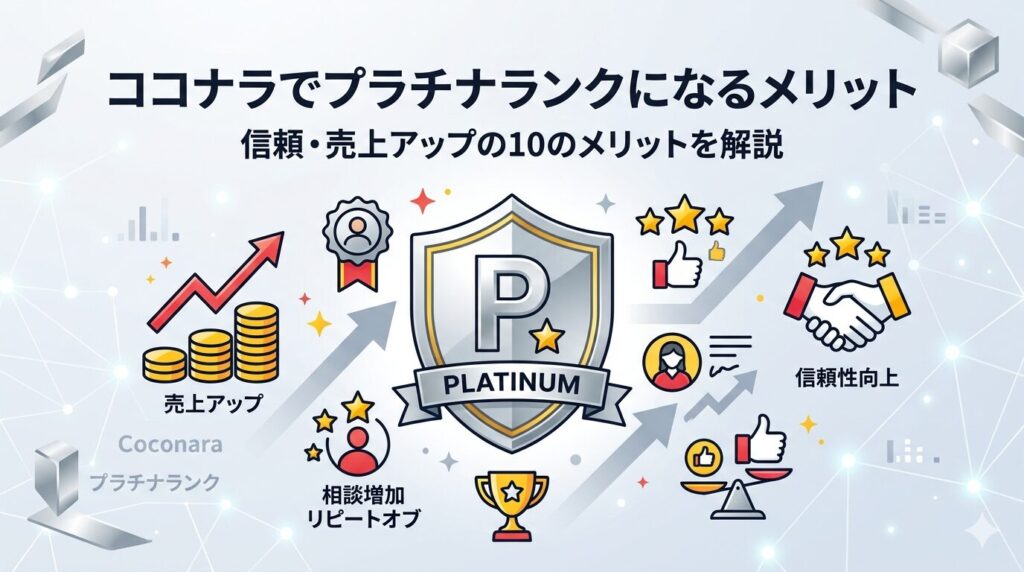 ココナラのプラチナランクは最上位の証であり、取得することで信頼性・成約率・検索順位など多くの面でメリットが得られます。