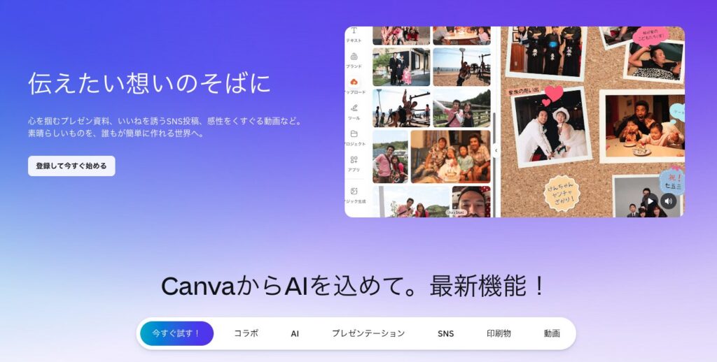 Canvaはブラウザ上で無料から使えるデザインツールで、豊富なテンプレートが用意されているため初心者でも簡単に使い始めることができます。