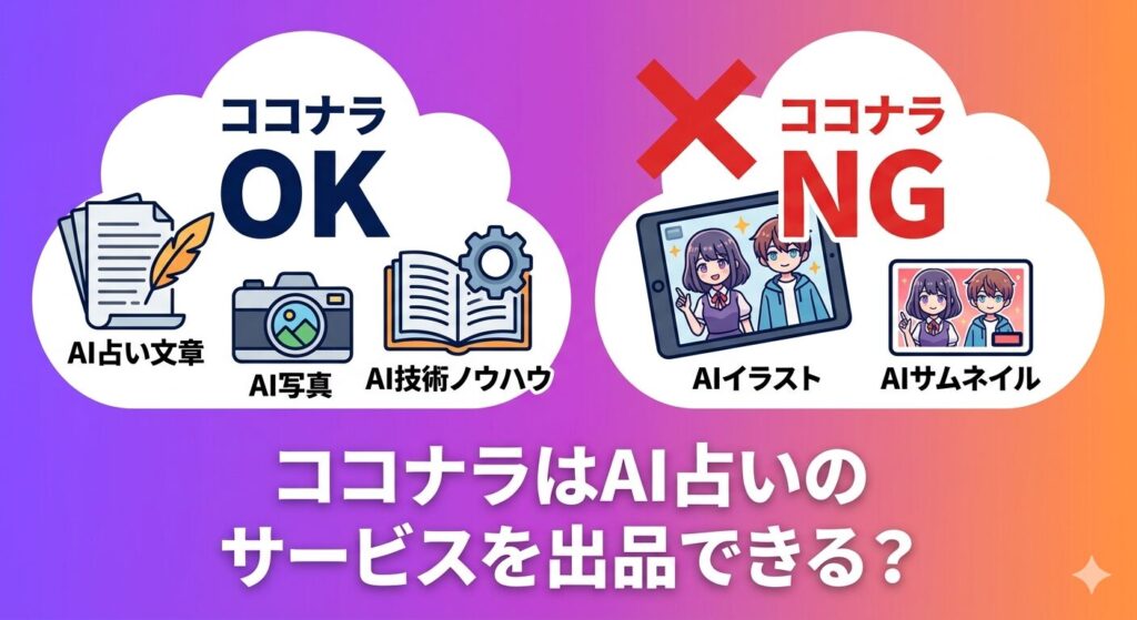 ココナラでAI占いを出品したいと考えている方に向けて、公式ガイドラインをもとに出品の可否をわかりやすく整理します。