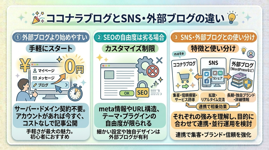 ココナラブログとSNS・外部ブログの違い
