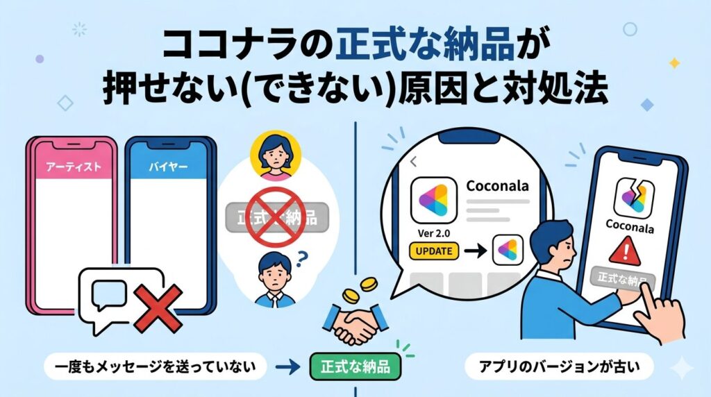 ココナラのアプリが古いバージョンのままだと、正式な納品ボタンが表示されない、または押しても反応しないといった不具合が発生することがあります。