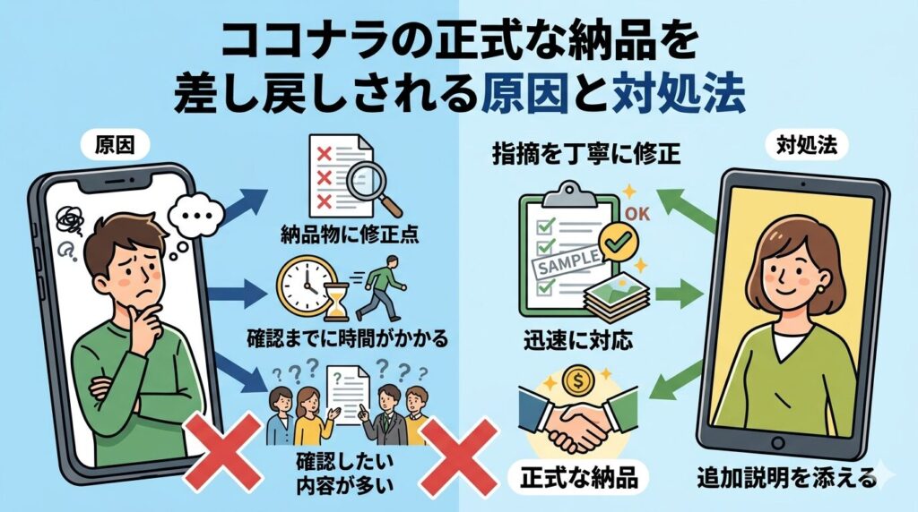 ココナラの正式な納品を差し戻しされる原因と対処法