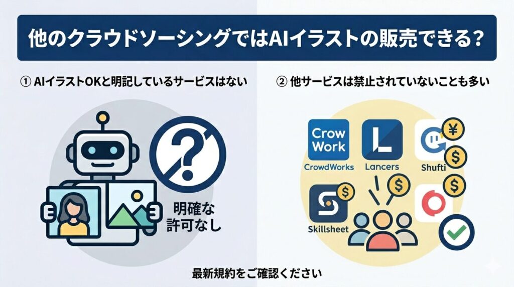 他のクラウドソーシングではAIイラストの販売できる?